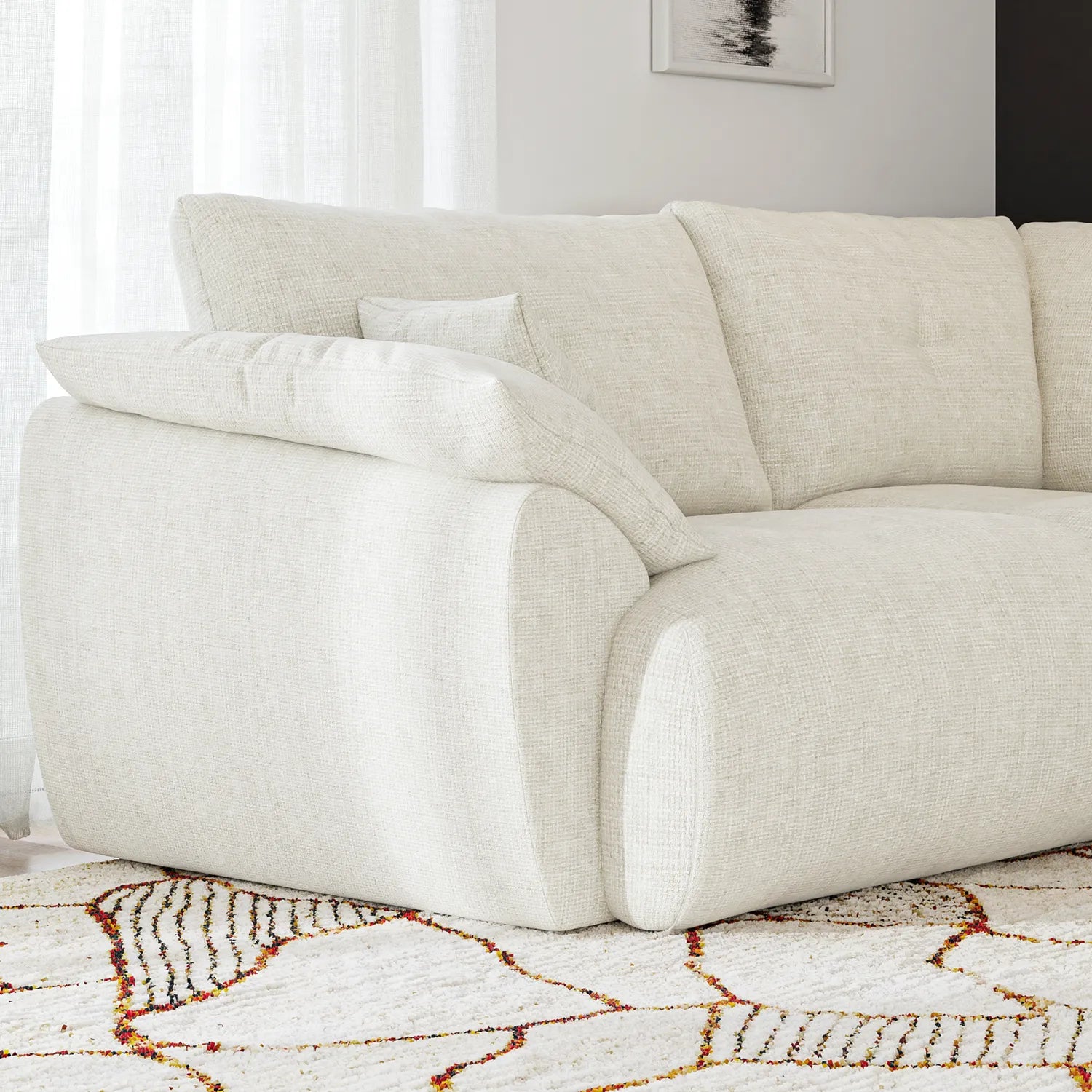 Le sofa BŪLLE offre une assise haute, des courbes accueillantes et un tissu doux au toucher. Pensé pour les longues soirées, il allie confort absolu et élégance moderne. Un divan où l’on s’installe pour de vrai, et qu’on n’a plus envie de quitter.