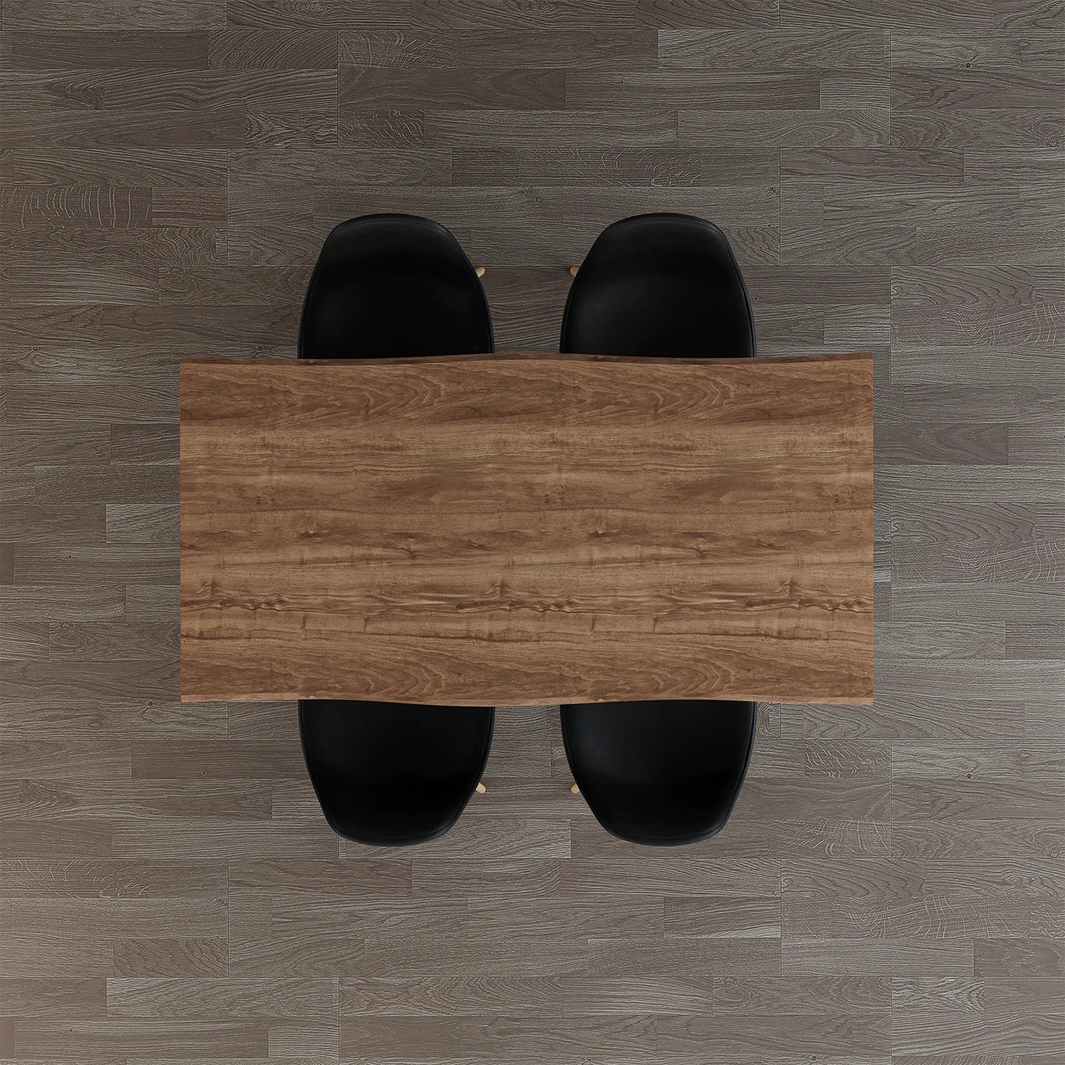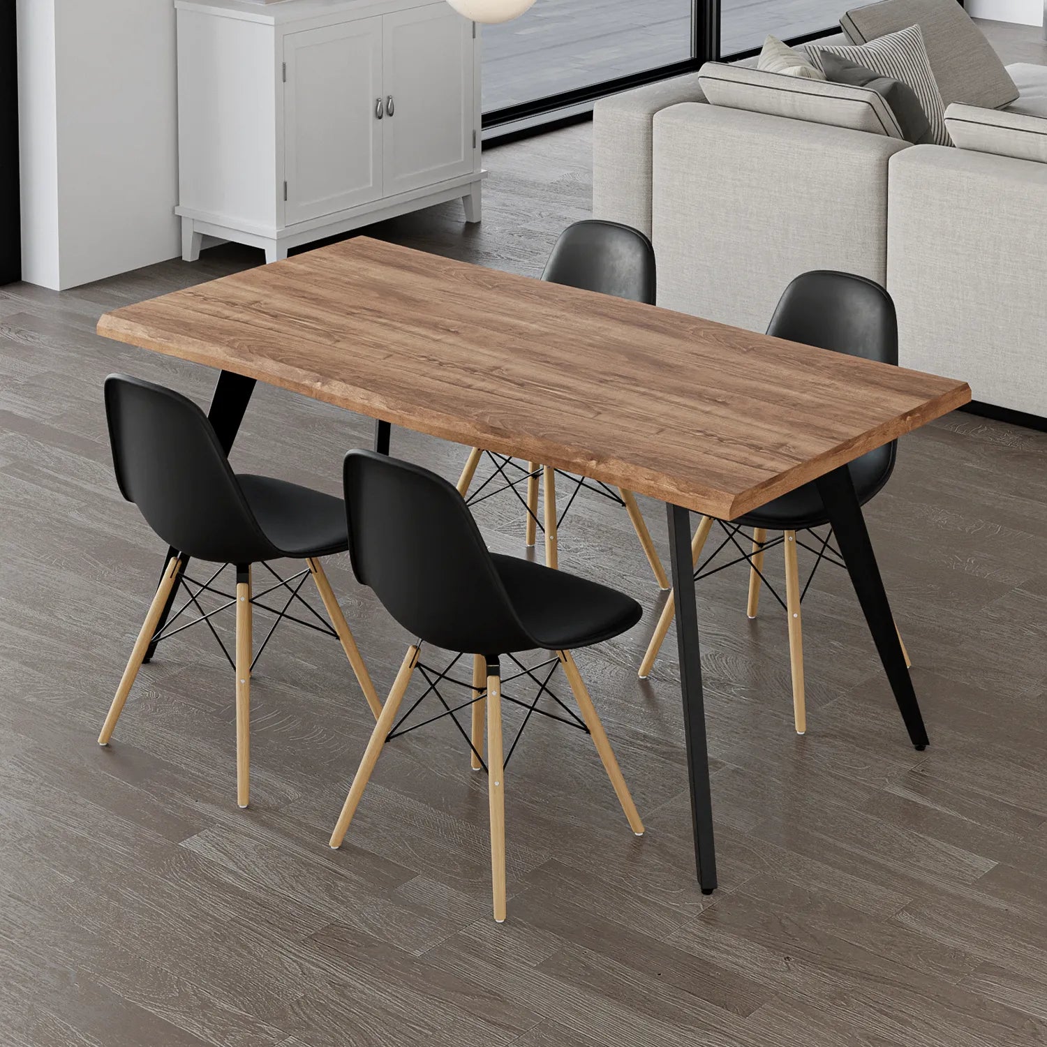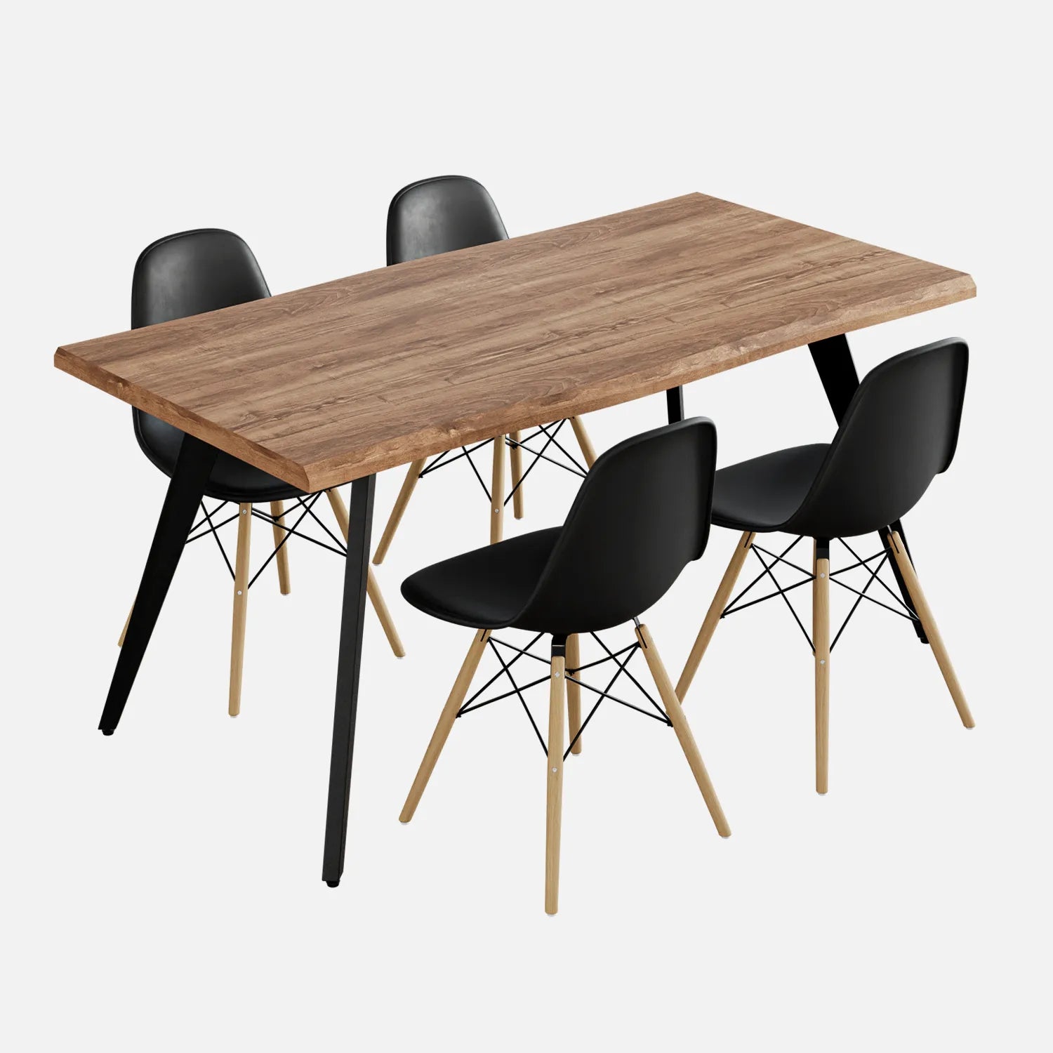 Transformez vos repas en moments mémorables avec l'ensemble de salle à manger CHĒNE. Son plateau au fini chêne foncé offre une allure chaleureuse et sophistiquée, tandis que ses chaises au design scandinave ajoutent une touche contemporaine. Parfait pour un espace convivial et élégant.