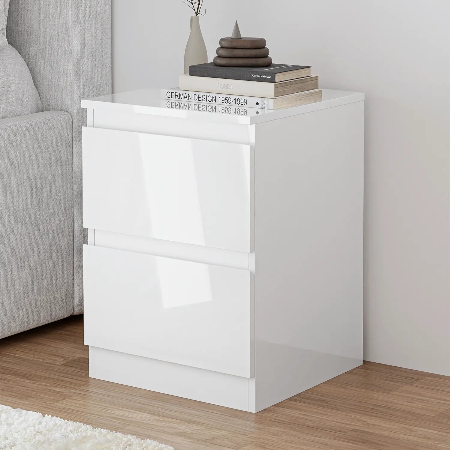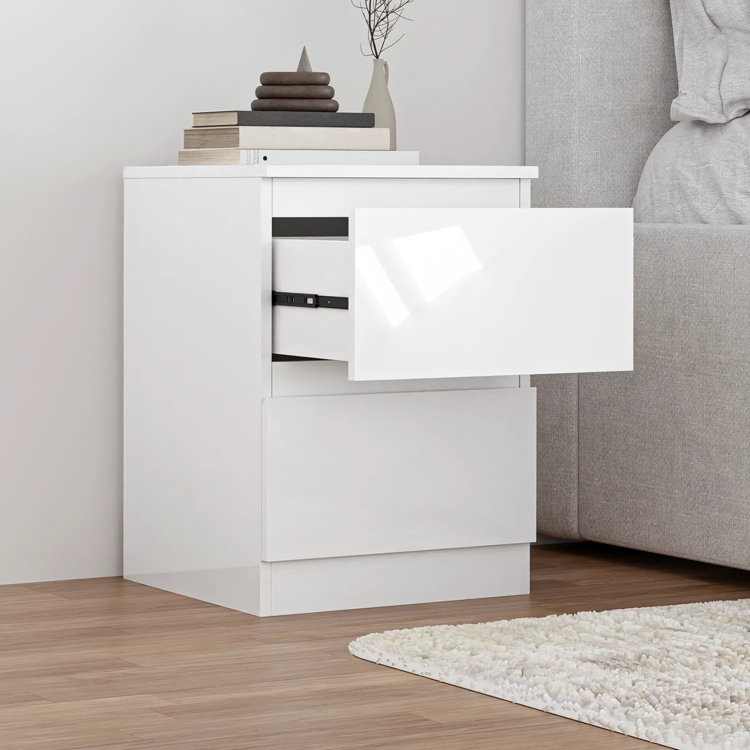 Optimisez votre espace avec la table de nuit COMOD. Son design compact et son fini blanc lustré ajoutent une touche de modernité à votre chambre. Avec ses deux tiroirs spacieux, elle est parfaite pour garder vos essentiels à portée de main, tout en restant élégante et fonctionnelle.