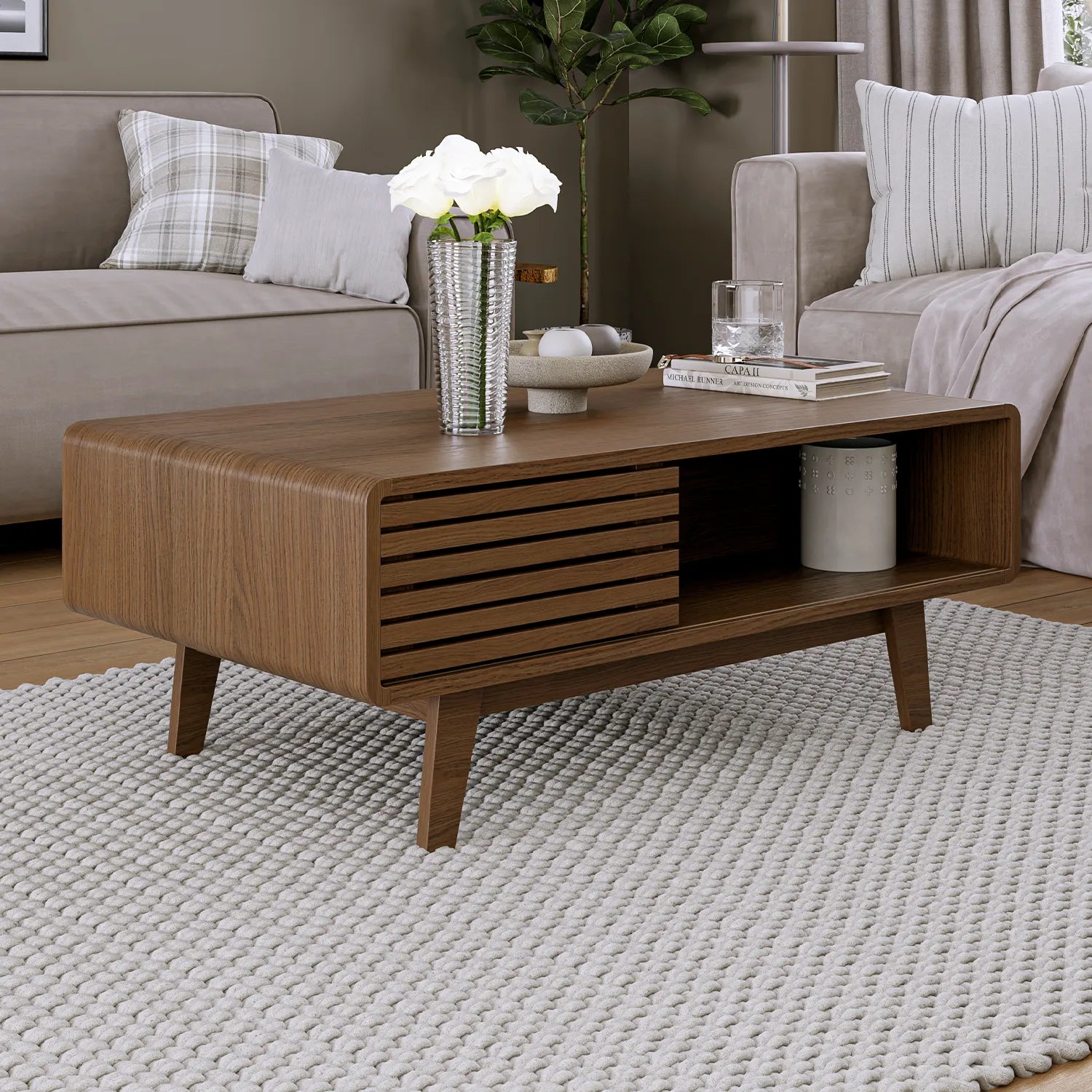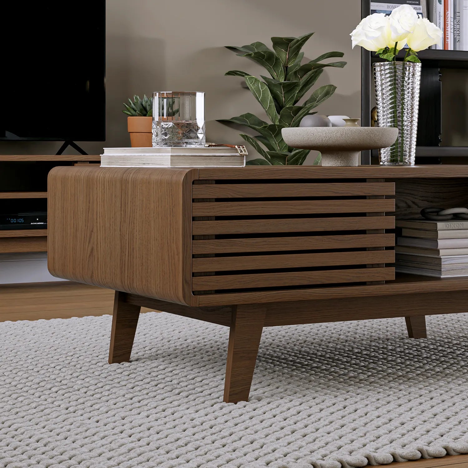 Complétez votre ensemble de salon avec la table basse KOVA. Avec sa finition en noyer doré et son design à lattes, cette table basse allie harmonieusement fonctionnalité et élégance. Idéale pour créer un espace de vie cohérent et accueillant, elle s’adapte aussi bien aux décors modernes qu’aux ambiances plus classiques.