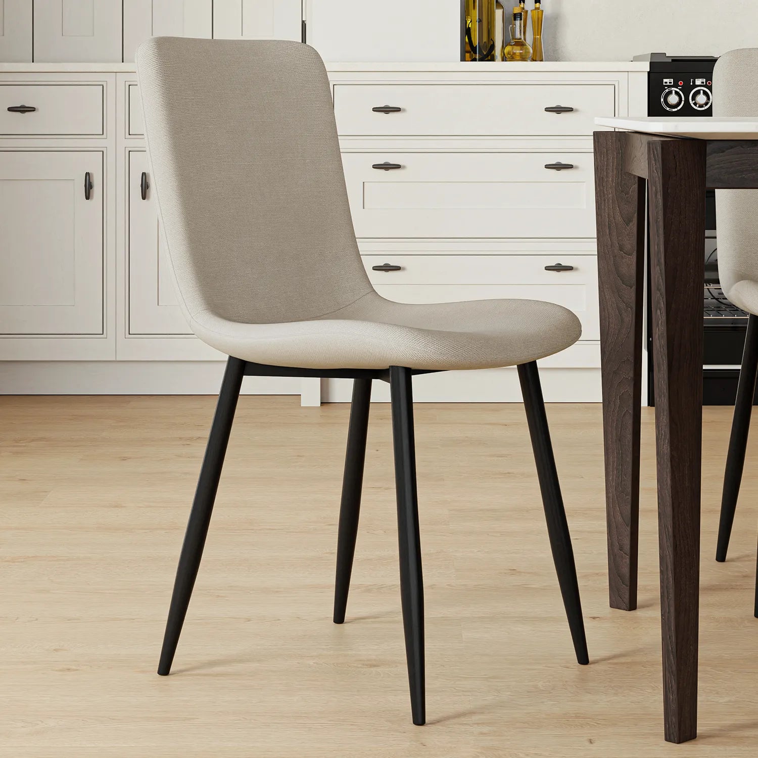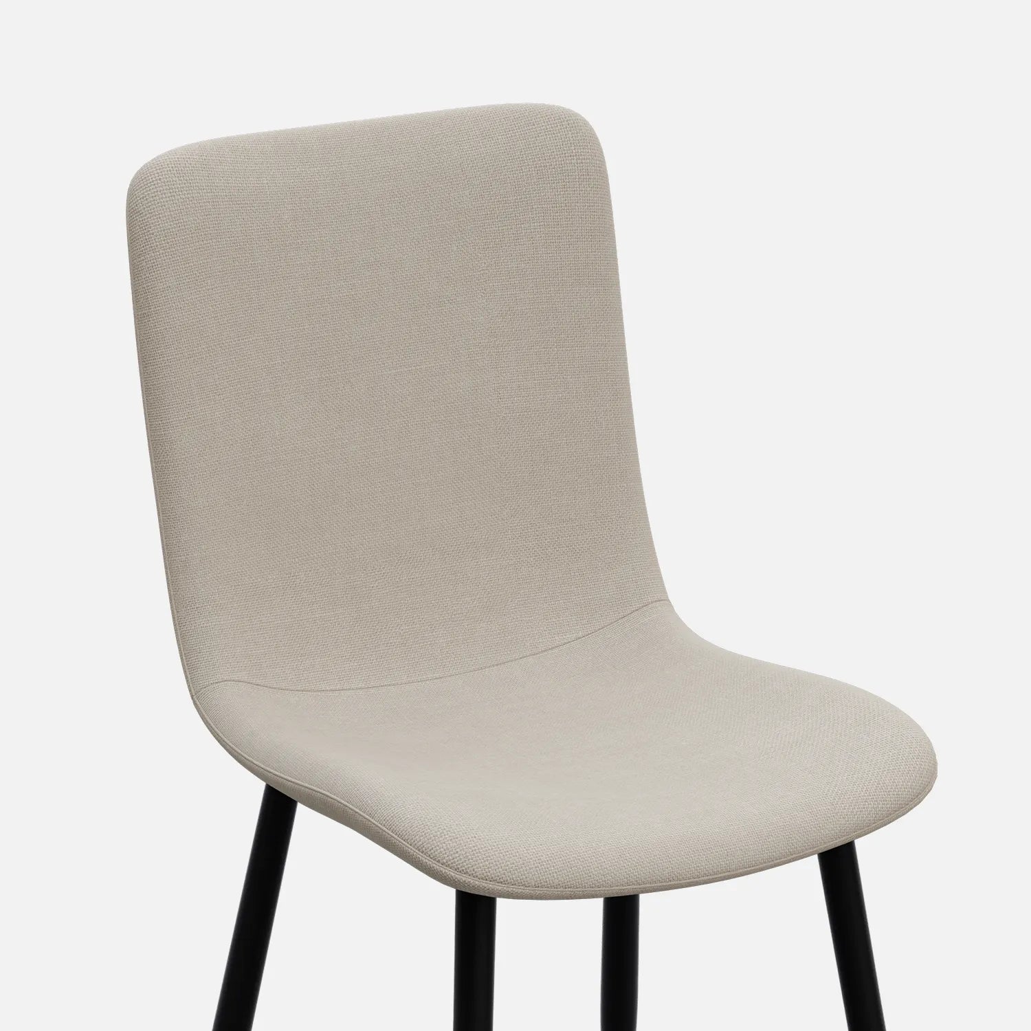 Apportez une touche moderne et confortable à votre salle à manger avec la chaise LEŌ. Son revêtement en lin blanc crème et son dossier ergonomique offrent un confort optimal, tandis que ses pieds métalliques noirs garantissent robustesse et stabilité. Une pièce essentielle pour un espace stylé.
