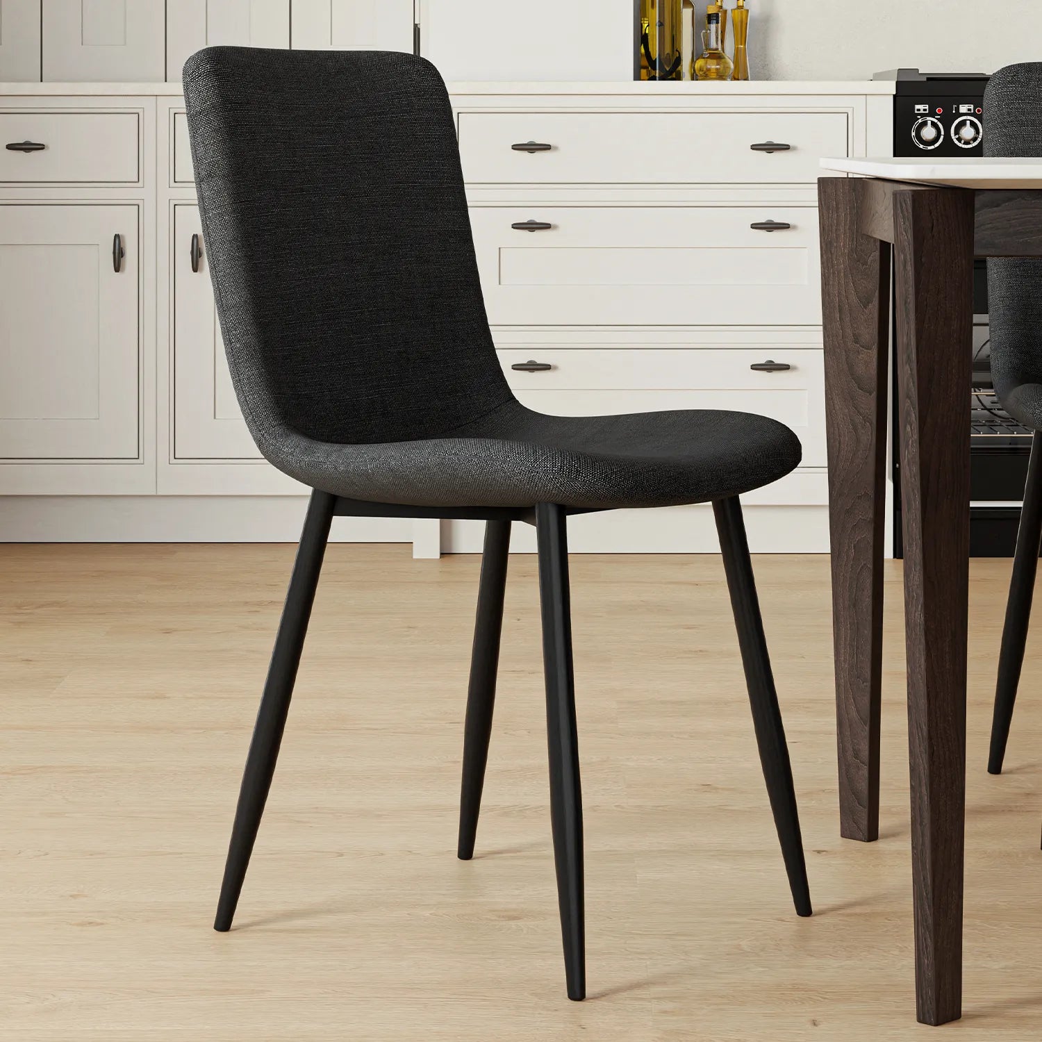 Apportez une touche moderne et confortable à votre salle à manger avec la chaise LEŌ. Son revêtement en lin noir et son dossier ergonomique offrent un confort optimal, tandis que ses pieds métalliques noirs garantissent robustesse et stabilité. Une pièce essentielle pour un espace stylé.