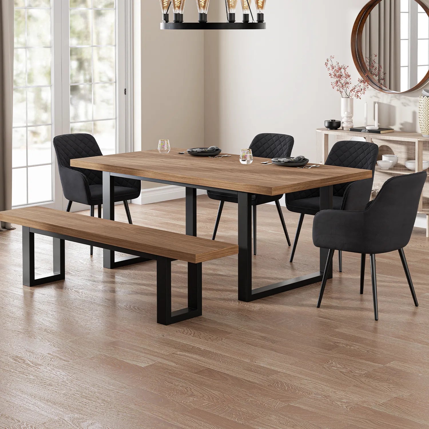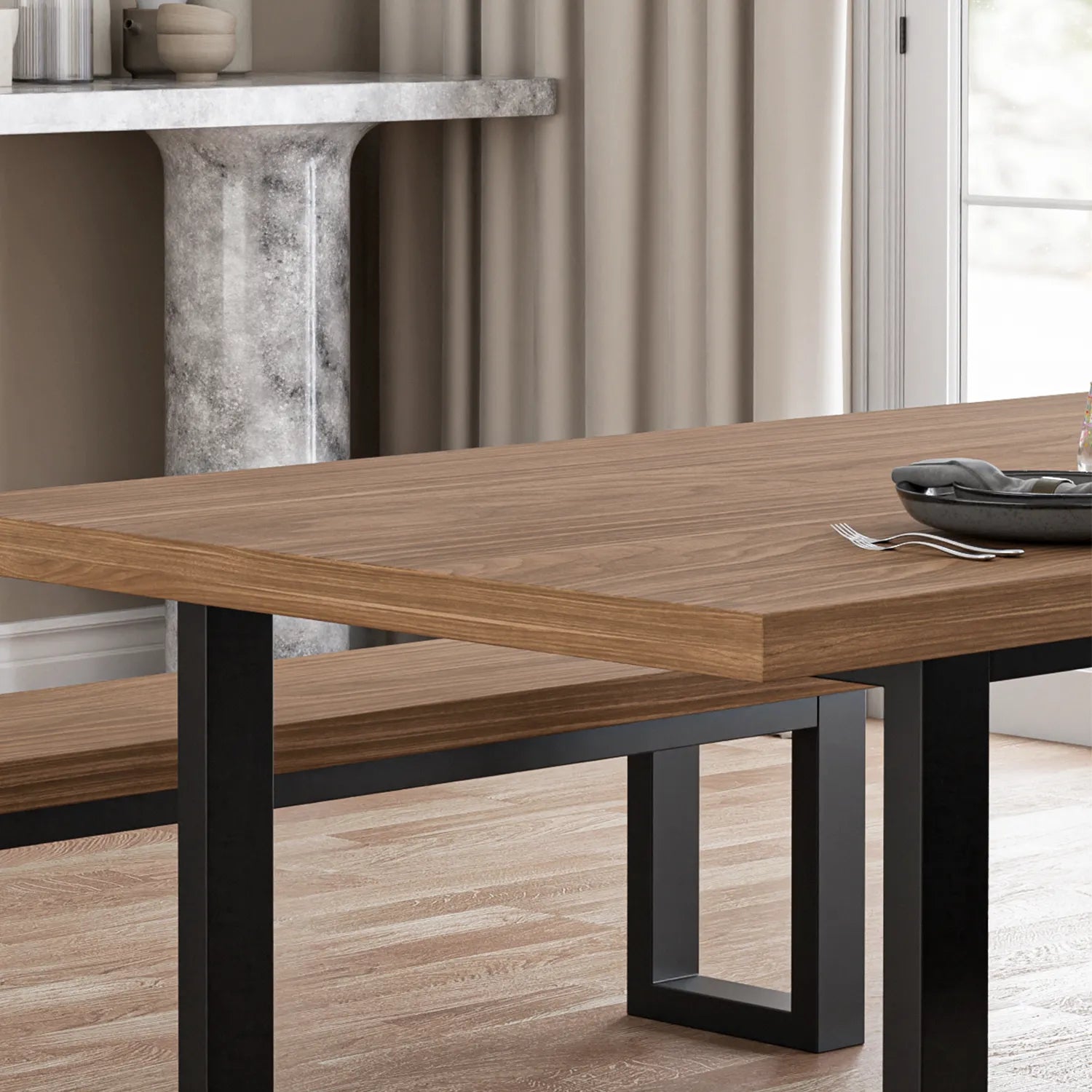Apportez une touche moderne à votre intérieur avec la table NŌRDIK. Son plateau en mélamine effet bois authentique repose sur un piètement en acier noir au design épuré. Son allure minimaliste, inspirée du style industriel et scandinave, en fait un choix parfait pour les cuisines et salles à manger.