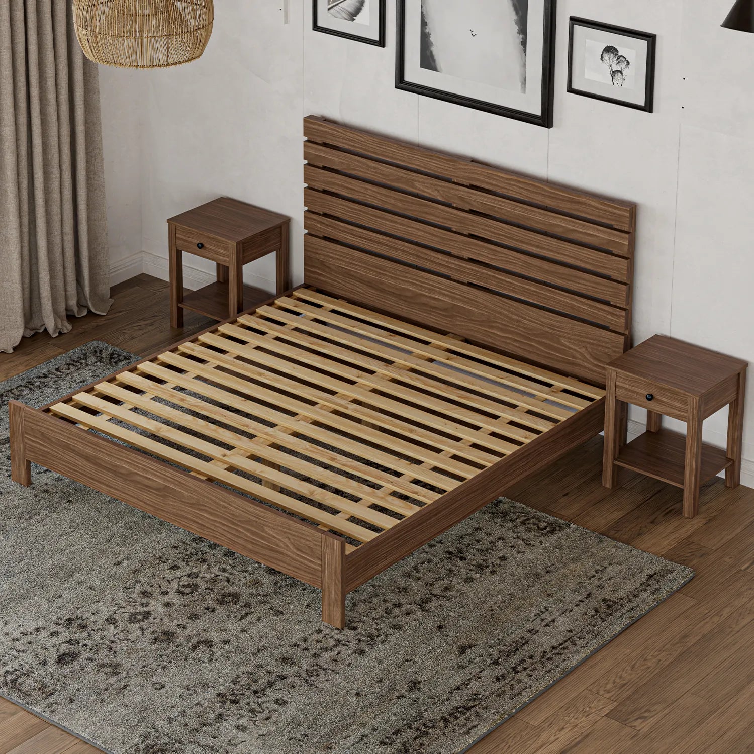 La base de lit NŌRDIK allie style scandinave et durabilité. Avec son fini en noyer foncé, elle offre un design épuré et intemporel, parfait pour rehausser l'ambiance de votre chambre. Avec ses lattes solides, elle assure un soutien optimal pour un sommeil réparateur.