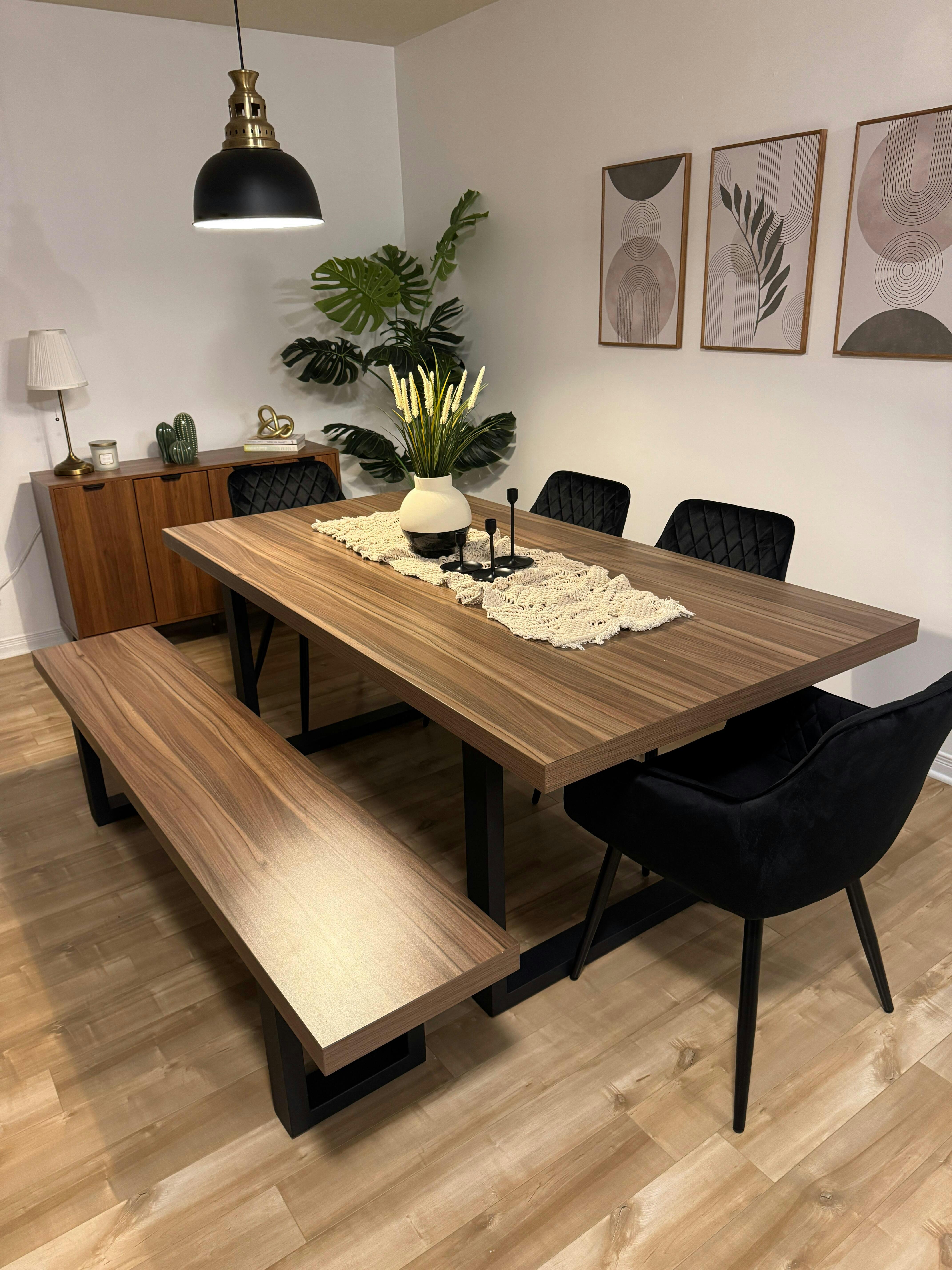 Apportez une touche chaleureuse à votre salle à manger avec l’ensemble NŌRDIK. Mariant à la perfection le bois naturel et l’acier noir, cette table spacieuse offrent un style industriel raffiné qui s’intègre à tous les décors. Conçue pour les moments de partage, elle est accompagnée de chaises rembourrées au design chic et confortable. Idéale pour accueillir famille et amis.