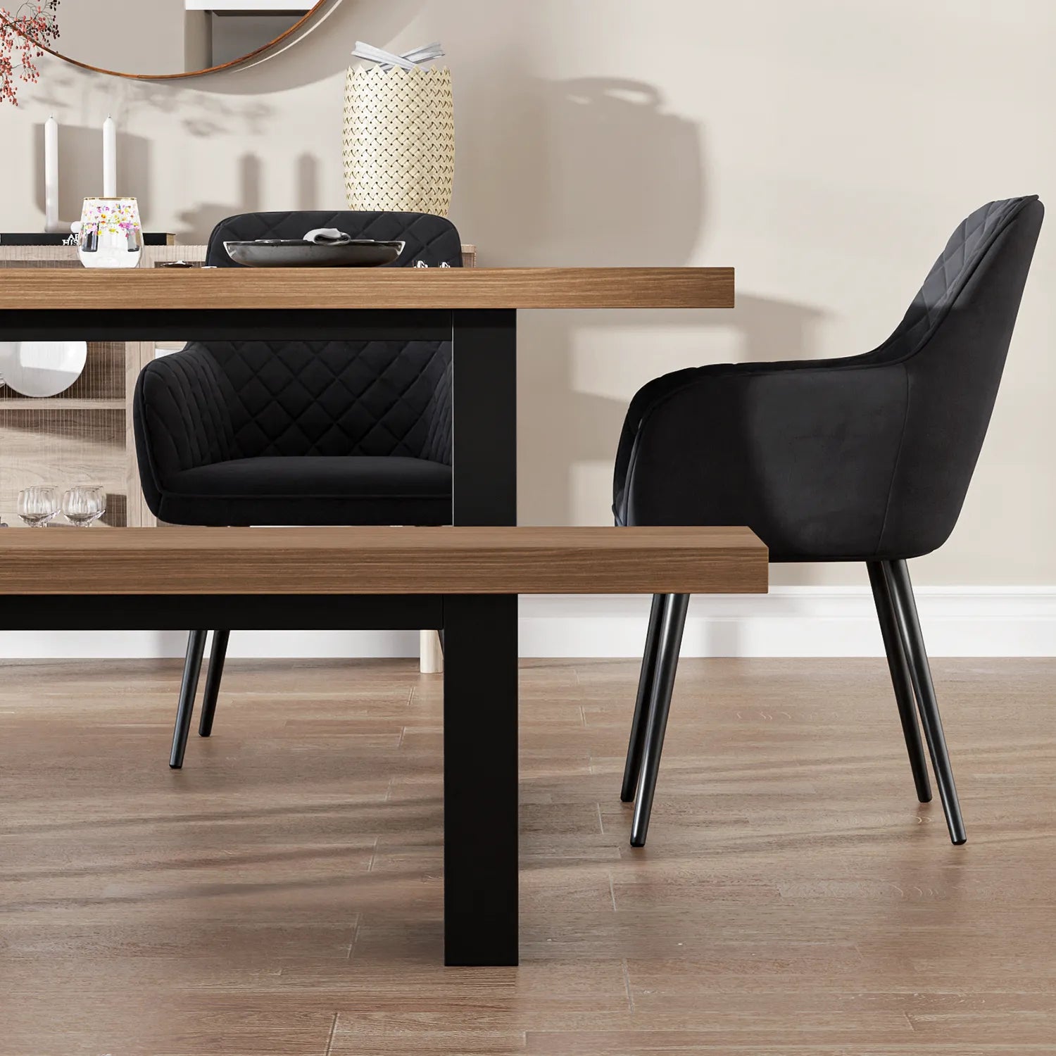 Apportez une touche chaleureuse à votre salle à manger avec l’ensemble NŌRDIK. Mariant à la perfection le bois naturel et l’acier noir, cette table spacieuse offrent un style industriel raffiné qui s’intègre à tous les décors. Conçue pour les moments de partage, elle est accompagnée de chaises rembourrées au design chic et confortable. Idéale pour accueillir famille et amis.