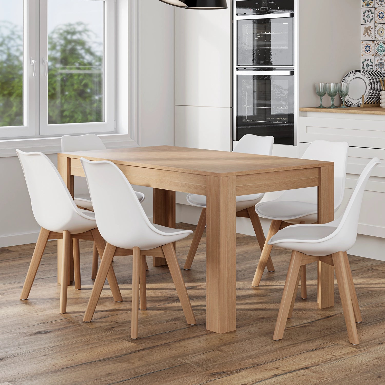 Offrez à votre salle à manger une touche de fraîcheur et de modernité avec l’ensemble NŌVA. Son design épuré au fini bois naturel et blanc s’intègre parfaitement dans tous les intérieurs, du scandinave au contemporain. Solide, fonctionnel et convivial, il est idéal pour partager de bons moments en famille ou entre amis.