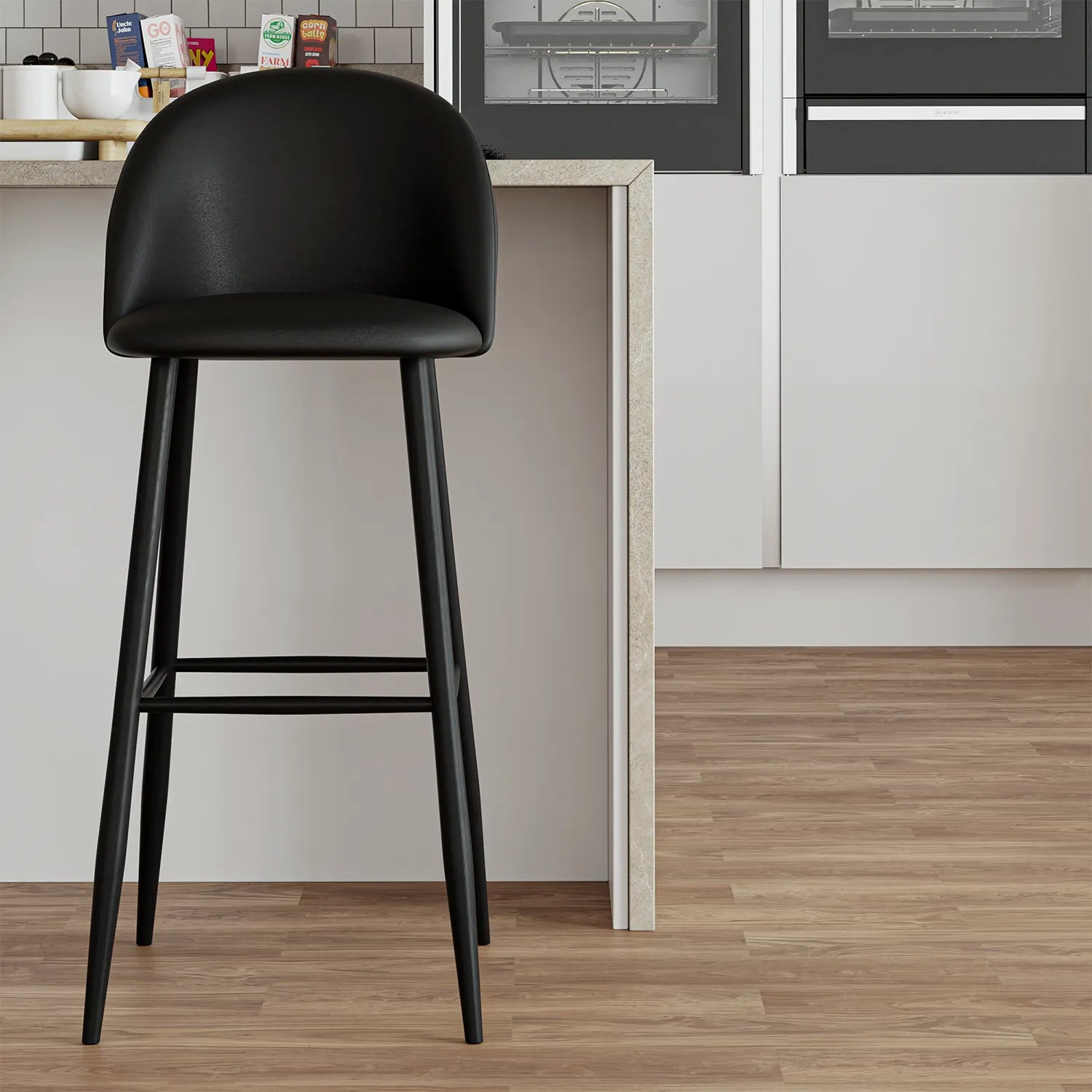 Ajoutez une touche moderne à votre cuisine avec le tabouret de bar ŌCEA. Fini noir mat, dossier arrondi et siège ergonomique pour un confort quotidien. Parfait pour comptoir, îlot ou bar. Structure en métal robuste et repose-pieds intégré. Design contemporain et durable.