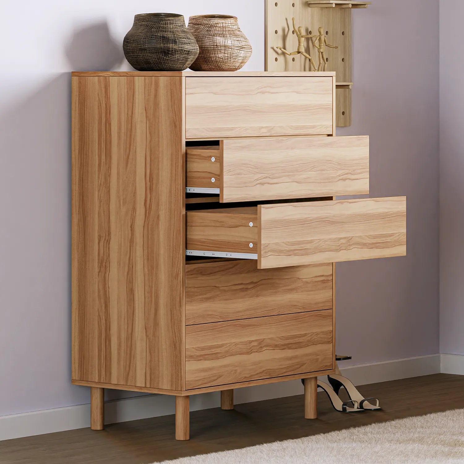 Simplifiez votre rangement avec la commode PŪRE. Son design intemporel de couleur bois naturel et ses 5 tiroirs spacieux en font un meuble à la fois pratique et élégant. Idéal pour maximiser l’espace, tout en ajoutant une touche chaleureuse et minimaliste à votre intérieur.