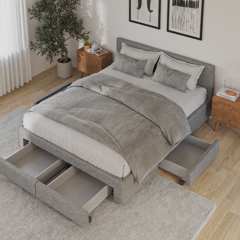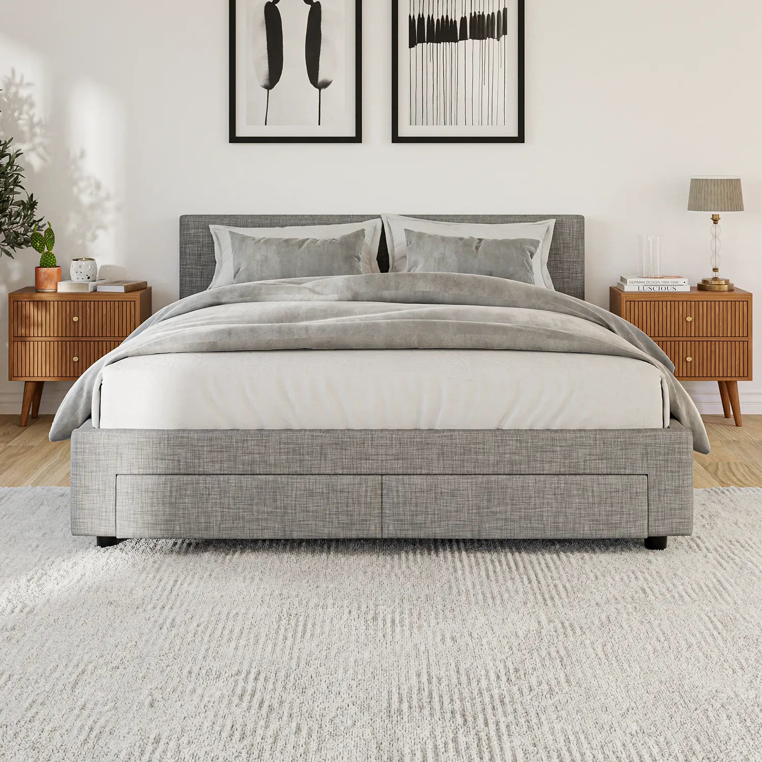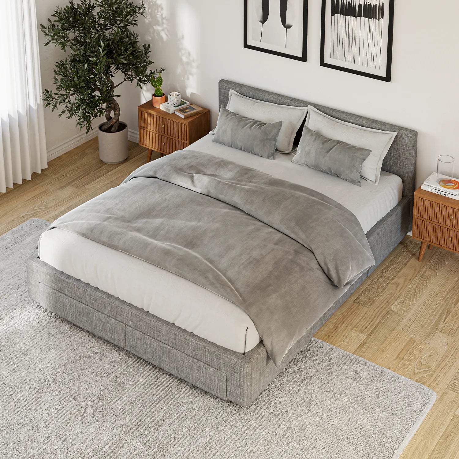 Base de lit avec rangement - Double - Gris clair