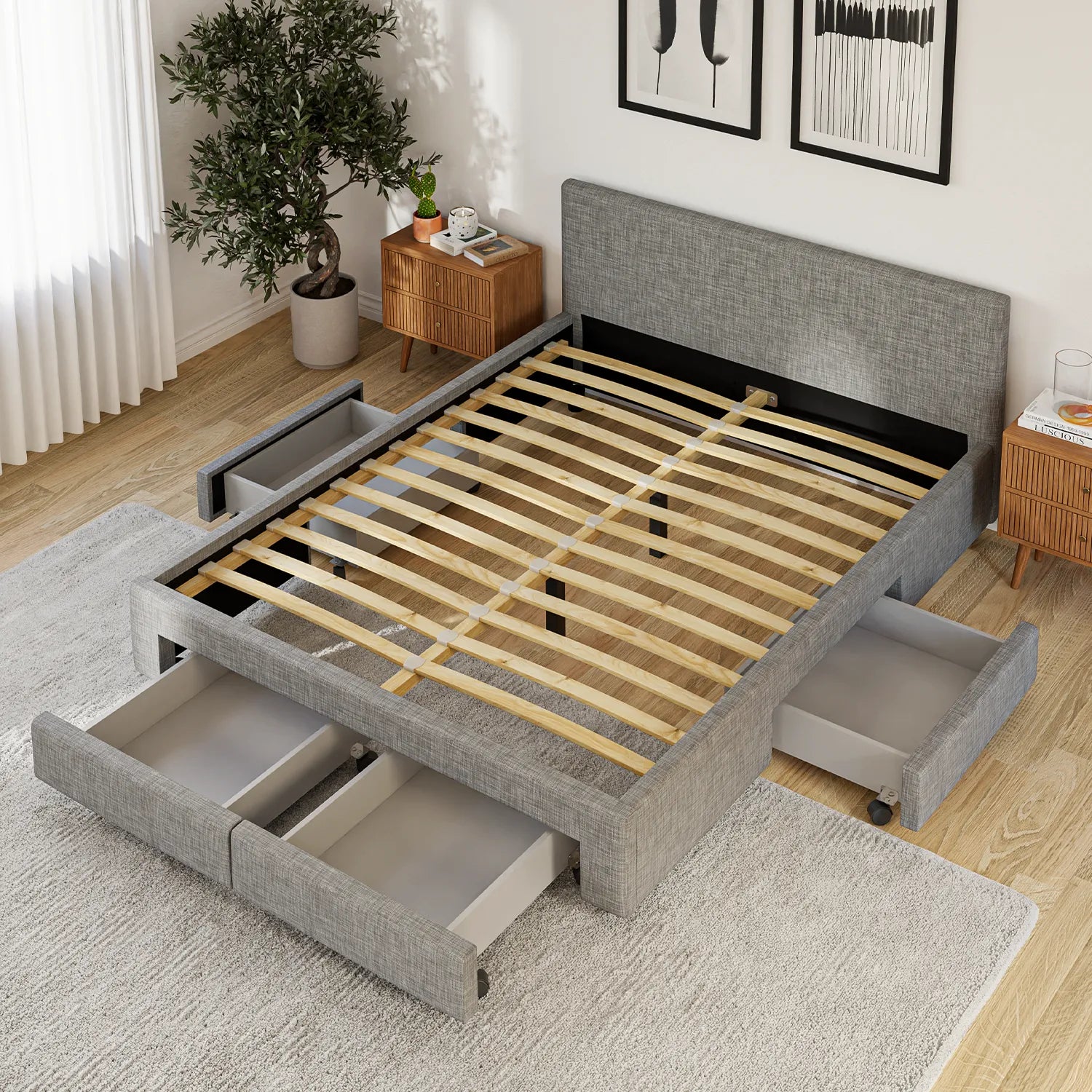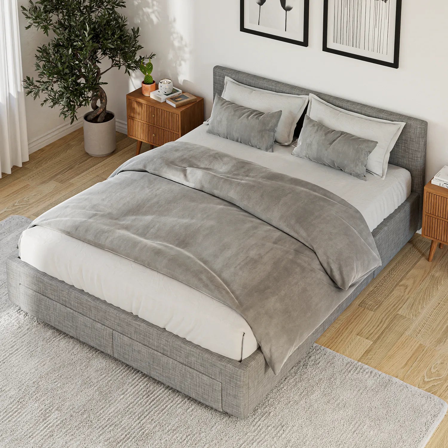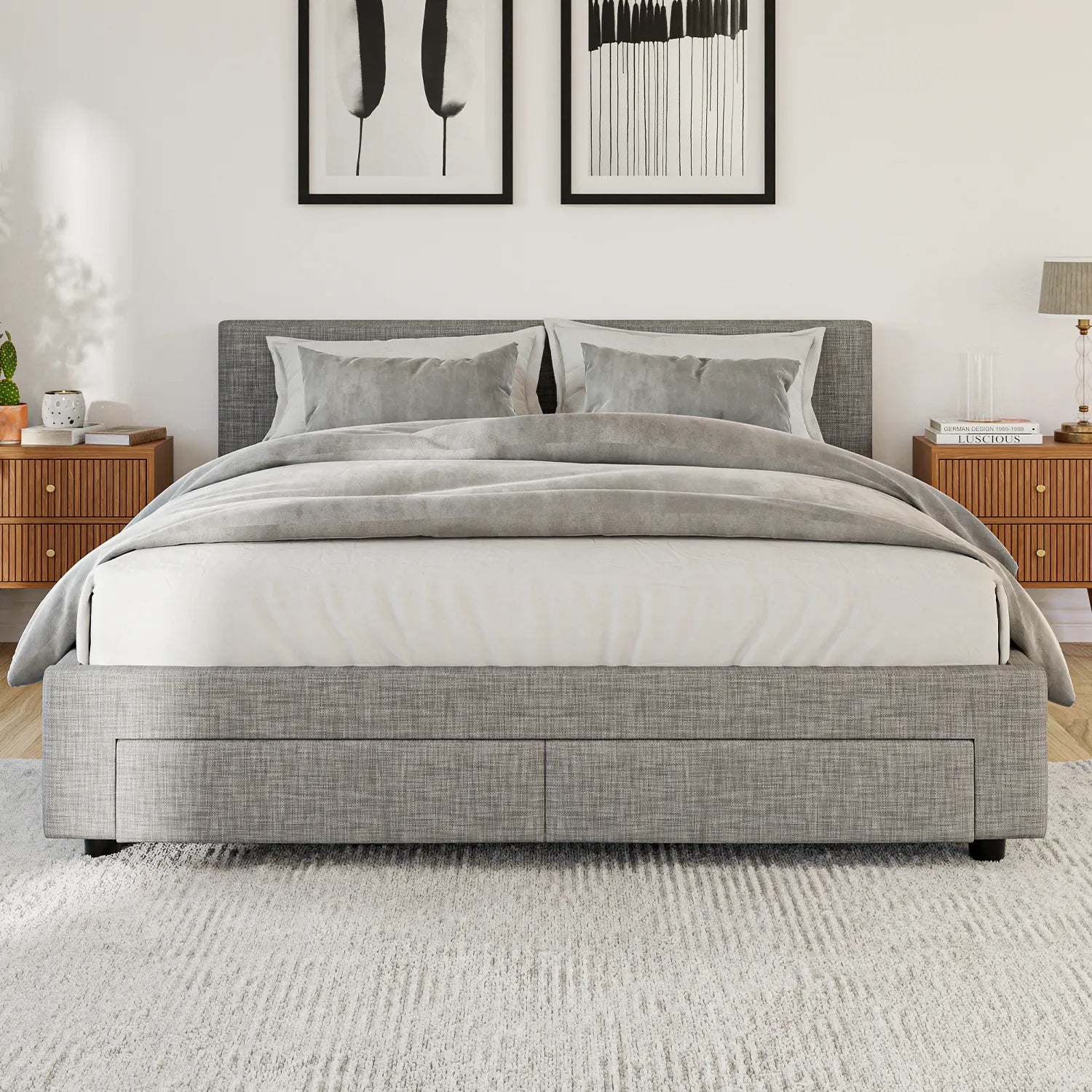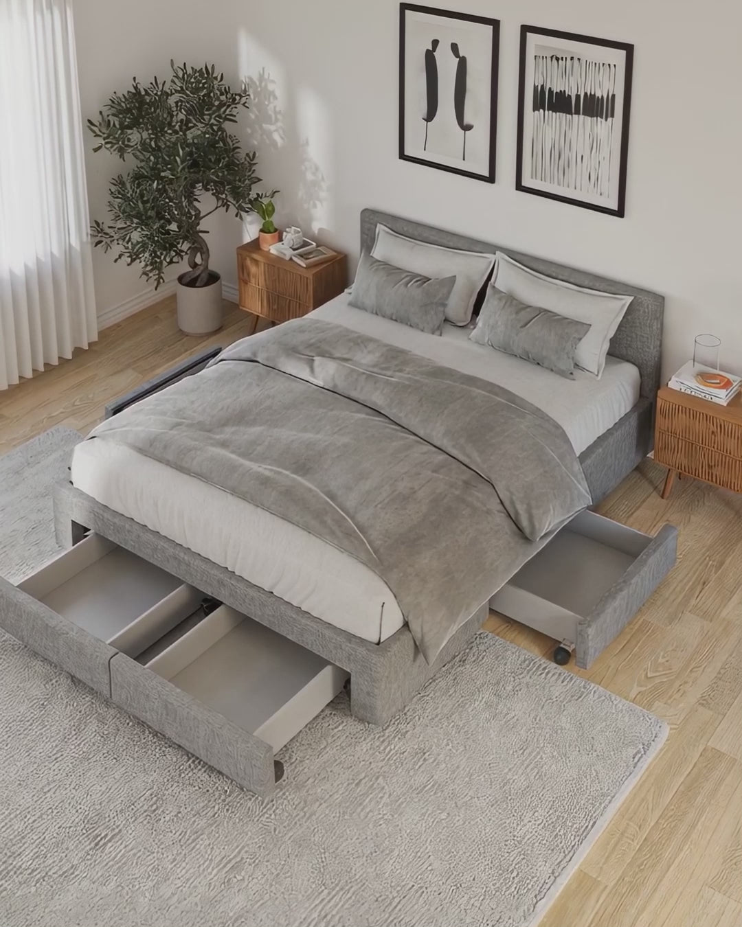 Apportez une touche d'élégance moderne à votre chambre avec la base de lit RĒVE, disponible en gris et en noir. Offerte en formats double, queen et king, cette base de lit combine style et fonctionnalité avec ses 4 tiroirs de rangement spacieux situés sous le lit, parfaits pour optimiser votre espace.