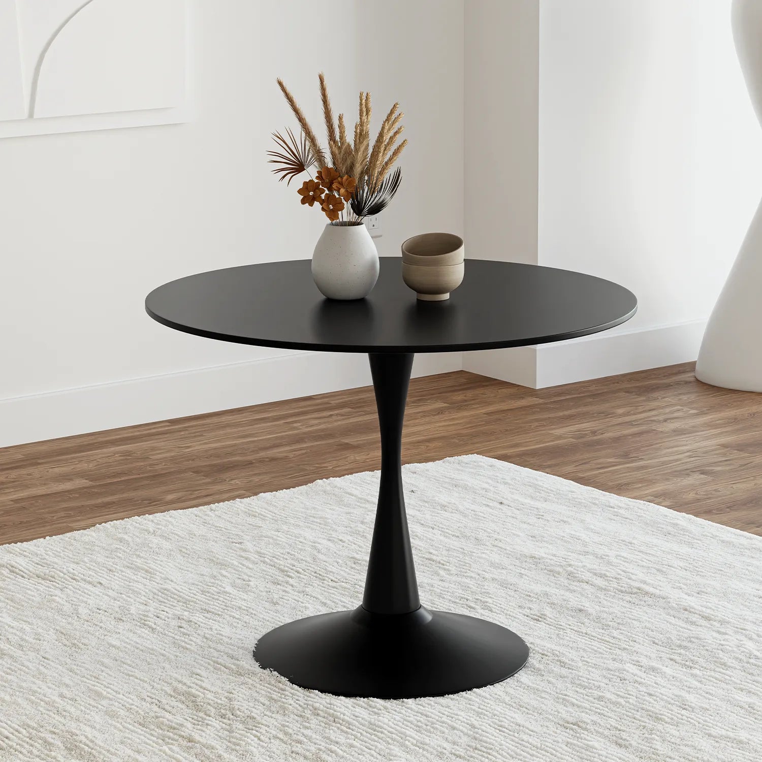La table de cuisine SŌMA reprend les codes du design moderne avec une touche de douceur. Sa silhouette tulipe emblématique, revue dans une teinte noire contemporaine, s’intègre aussi bien dans un loft urbain que dans un intérieur scandinave.